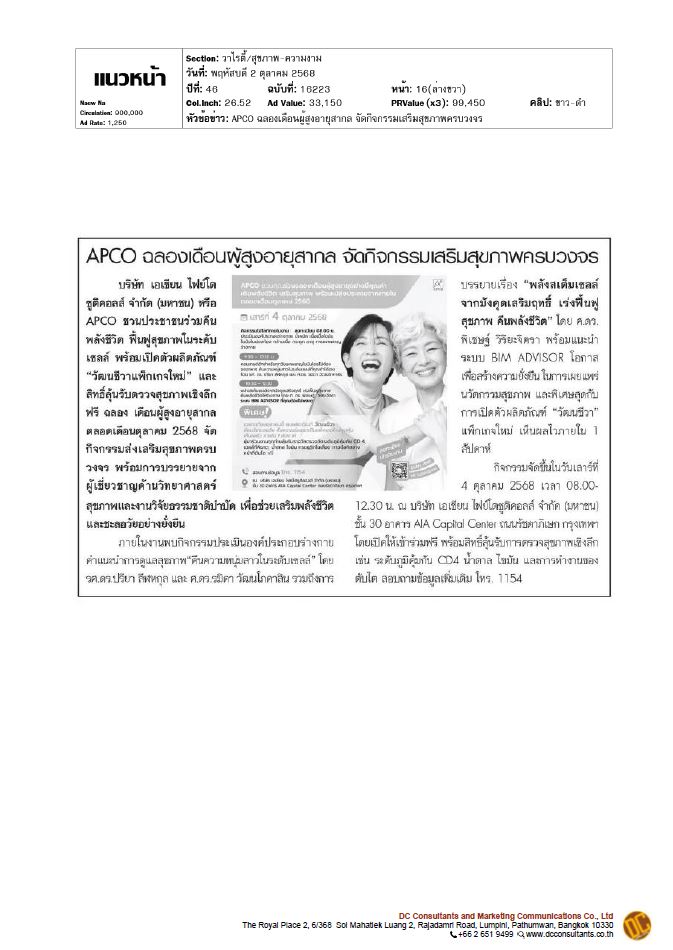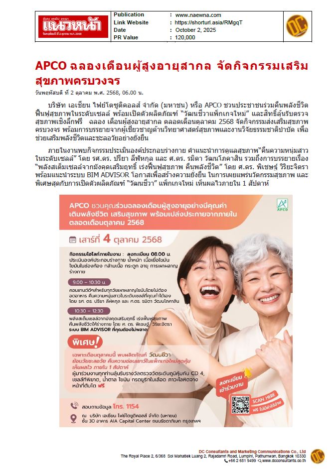 APCO ฉลองเดือนผู้สูงอายุสากล จัดกิจกรรมเสริมสุขภาพตลอด ตุลาคม 2568 www.the-perspective.co